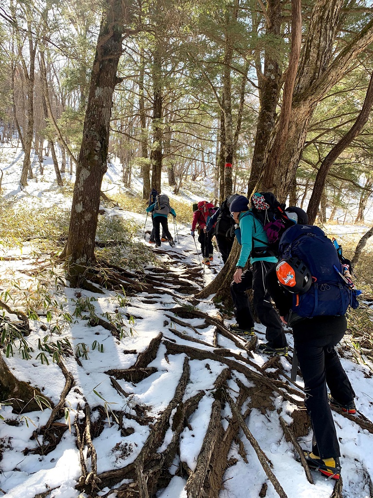 初日は天気に恵まれグイグイ登り、重い冬装備の荷物にも関わらず皆さんしっかり登りました。