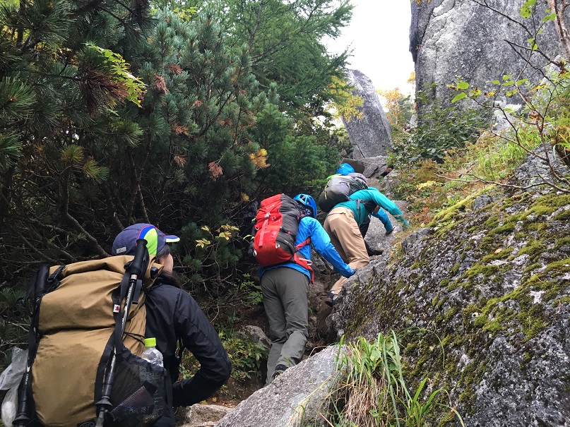そして1日目小屋到着後は、翌日に向けて足場の悪い箇所の攻略講座も行われました。