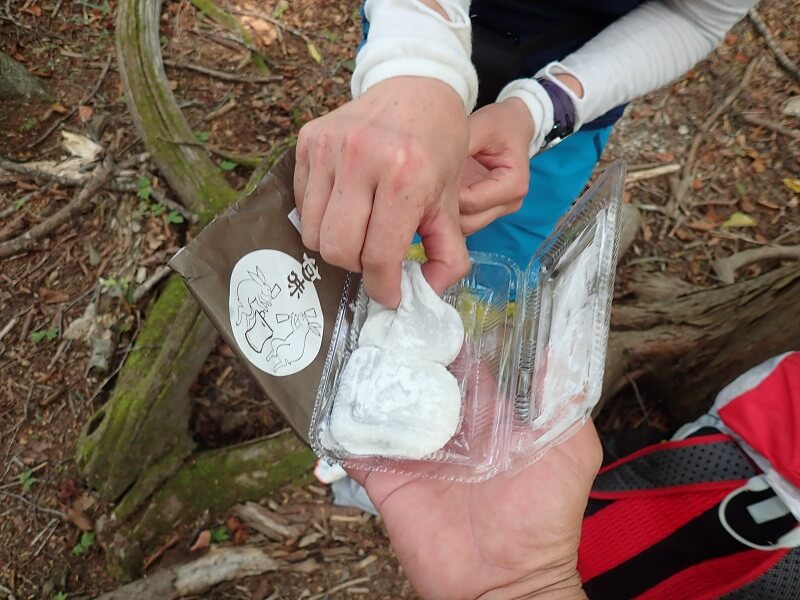 朝ごはんは道中で七丈小屋特製手作り稲荷弁当をいただきます。これが力が出るんです!